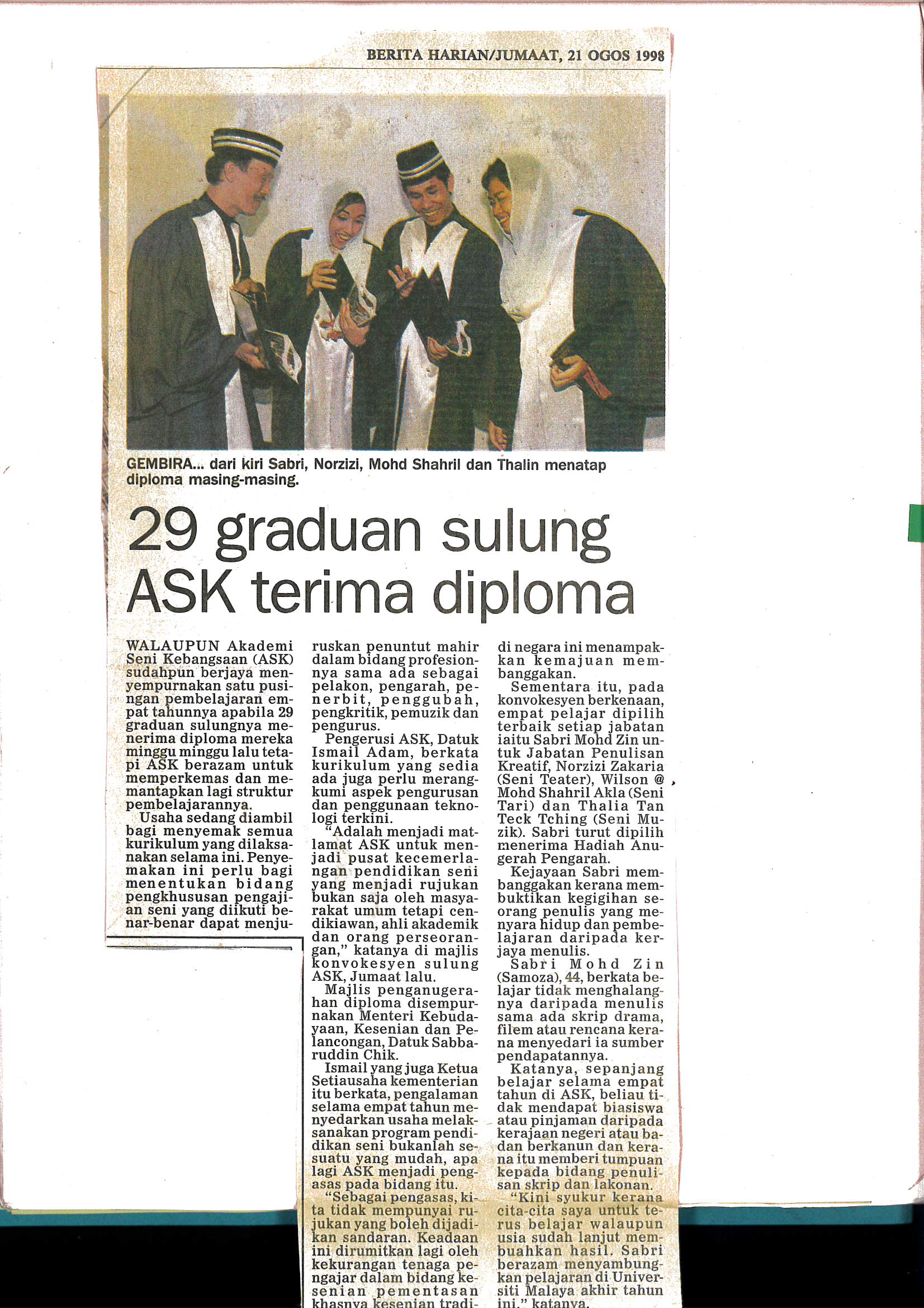 WALAUPUN Akademi Seni Kebangsaan (ASK) sudahpun menyempurnakan satu pusingan pembelajaran empat tahunnya apabila 29 graduan sulungnya menerima diploma mereka mingu mingu lalu tetapi ASK berazam untuk memperkemaskan dan memantapkan lagi struktur pembelajarannya.