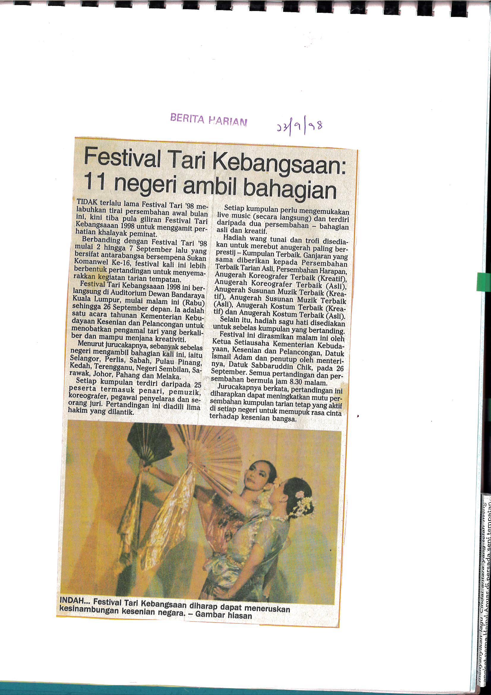TIDAK terlalu lama Festival Tari '98 melabuhkan tirai persembahan awal bulan ini, kini tiba pula giliran Festival Tari Kebangsaan 1998 untuk menggamit perhatian khalayak ramai.