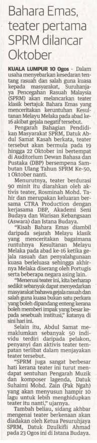 Bahara Emas, teater pertama SPRM dilancar Oktober