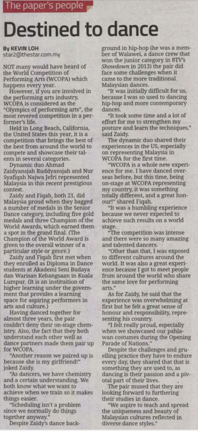 Having danced together for almost three years, the pair couldn't deny their on stage chemistry. Also, the fact that they both understand each other well as dance partners made them pair up for WCOPA.